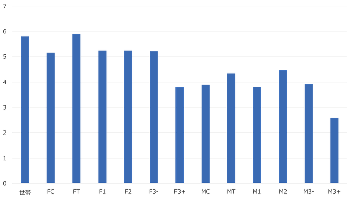 一方、M1〜M3層(20歳以上の男性)ではやや低調。特にM3+層(65歳以上の男性)では2.7%と低い水準となっており、番組としては女性中心のポジショニングを狙っていると思われます。