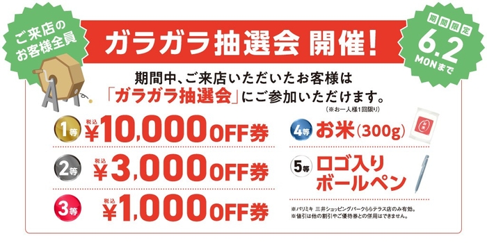 5月31日(土)~ 6月2日(月)までの3日間「ガラガラ抽選会」を開催いたします。