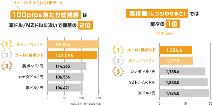 ※最強通貨ペアシリーズ:2016年7月~2020年12月の100pipsあたり総推移が、当社取り扱い全15通貨ペア中No1、No2