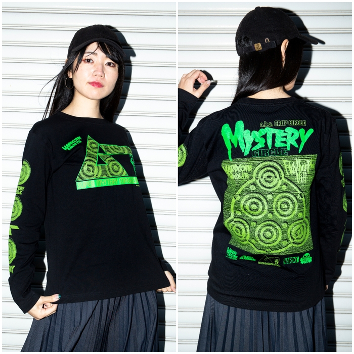 長袖バージョンは両腕にこれでもかとミステリー・サークルを配置。増殖し続ける謎現象をアパレルで再現!