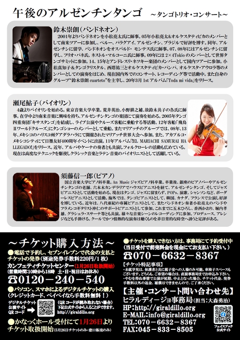 昨年好評を博したタンゴトリオ・コンサート『午後のアルゼンチンタンゴ』再演決定! 今回は古典タンゴを中心に名曲を演奏