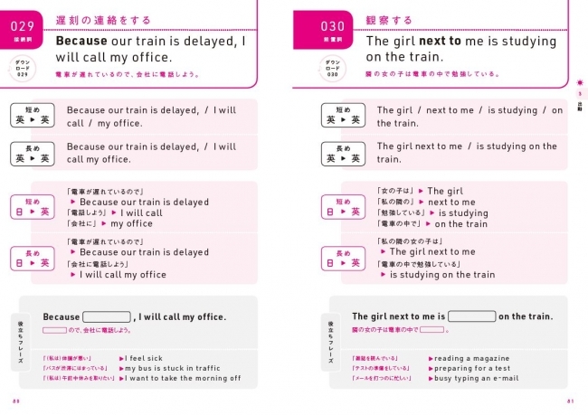 さらに今作では、掲載する英文を「朝起きてから寝るまでの<シーン>」と「話すために必要な<英文法>」を盛り込んでいることが特徴です。この1冊をやり抜けば、ネイティブにそのまま伝わる洗練された800表現がマスターできます。