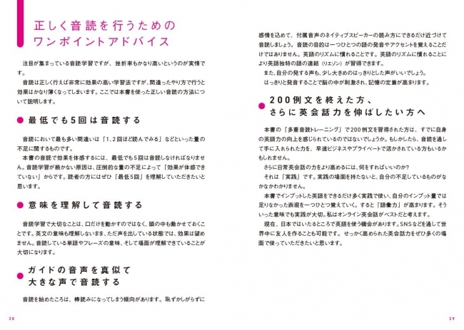 この音読を重ねていくだけで、必須英文が脳に刷り込まれ、本番でもスルスルと口にすることが可能になります。