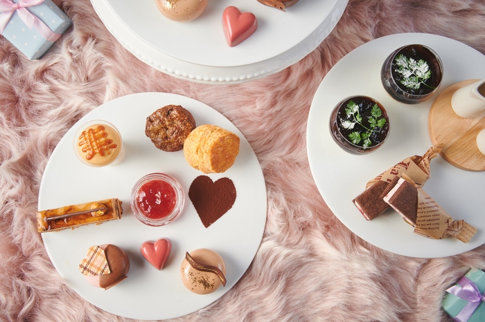 甘さ際立つミルクチョコレートのムースに濃厚なコクのピスタチオクリームを閉じ込めた「メルティショコラピスタチオムース」や、お好みでホワイトチョコモカソースをかけてお召し上がりいただく「ロイヤルコーヒーゼリー」など、ほろ苦いコーヒーと甘いショコラを絶妙に融合したパティシエ渾身のバレンタインスイーツを、スコーンや軽食、紅茶のフリーフローとともにご堪能ください。