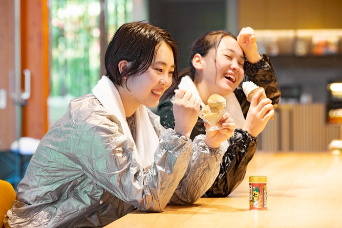 コロナ太りを撃退するために、走って、サウナに入って、いい汗をかいた後には、ご褒美のおやつとして冷たいアイスクリームを用意します。がんばるためには、ムチだけなくアメも必要です。罪悪感があって食べづらいという方には、アイスクリームを食べながらでも汗をかけるように、トッピング用の一味唐辛子を用意しています。