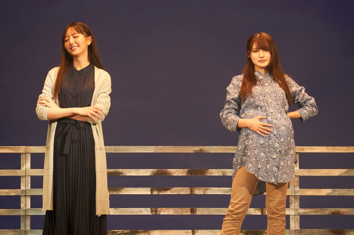 主人公ユリの中学時代の同級生・松山ハルコを演じるのは、森保と同じくHKT48のメンバーとして活躍していた神志那結衣。「私は先生で妊婦の役なんですけど、しっかりと生徒のみんなと一緒にユリを引っ張っていけるように努めて参ります」と役柄を説明しつつ意気込みを伝え、「しばらく会っていなかったので、最初はちょっと壁があったような気がするんですけど、稽古を重ねていくうちに思い出してきて、最終稽古に近づいた頃には親友という関係が出来上がっていました」と森保との共演についての思いを語った。