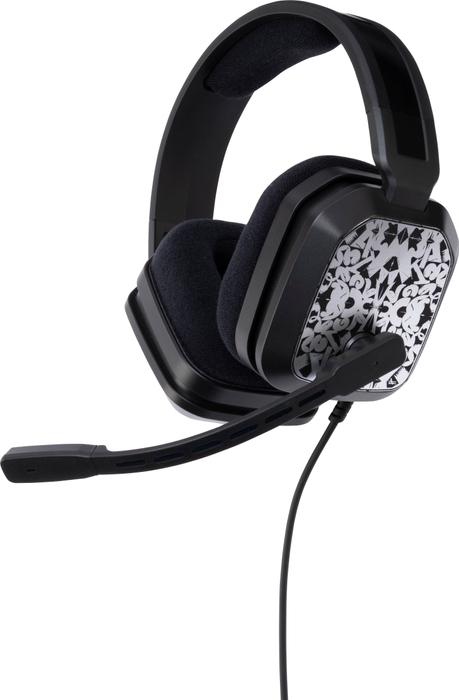 本製品は、Fantasista Utamaro氏による『タイプフェイスカレイドスコープ』シリーズのデザインが施されたヘッドセットです。40mm径のダイナミック型ネオジムドライバーを採用。さらに遮音性の高いイヤーパッドを使用しており、FPSなどで仲間とボイスチャットをしながら臨場感あふれるサウンドを堪能できます。ヘッドバンド頭頂部とイヤーパッドにはやわらかなクッション素材を使用しており、耳にしっかりとフィット。PS5、PS4、NINTENDO SWITCHシリーズ、パソコンなどさまざまな機種で使用できます。