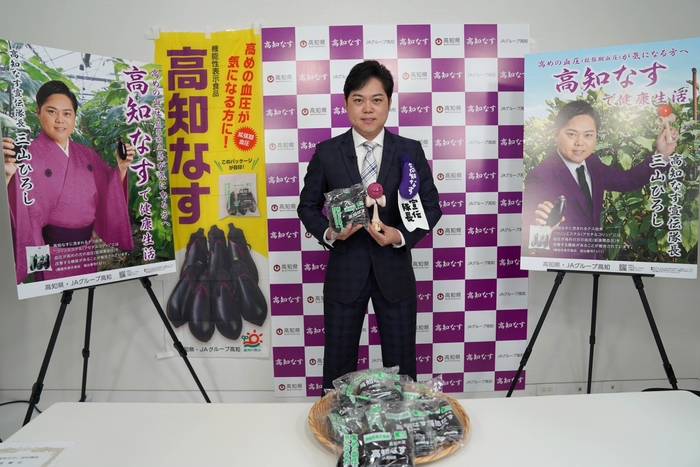 「高知なす」の宣伝隊長に歌手・三山ひろしさんが就任  血圧が高めの人の血圧(拡張期血圧)を改善!機能性野菜をPR | NEWSCAST