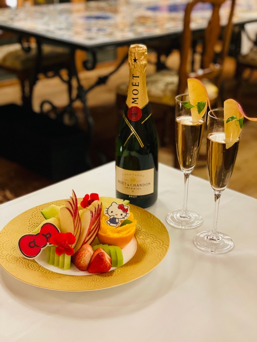 特典内容:①夕食時の乾杯シャンパン ②夕食時の「ハローキティ フルーツプレート」