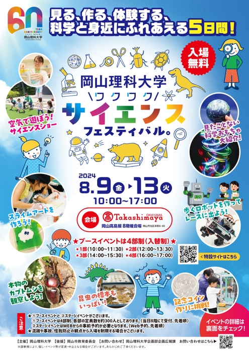 【60周年特別企画】岡山理科大学ワクワク、サイエンスフェスティバル。|2024年8月9日(金)~13日(火) 開催!入場無料 | NEWSCAST