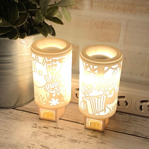 スナフキンとリトルミイが描かれたアロマランプは、切り絵のような雰囲気がムーミンのキャラクターにぴったり。