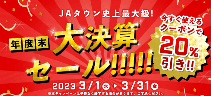 「年度末大決算セール」特設ページ:https://www.ja-town.com/shop/e/ekessan/