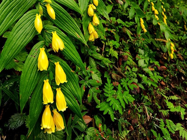 本州(紀伊半島南部)に分布する多年草です。深山のがけから垂れ下がるようにして生育しています。長さ40~80cmの茎はしなだれて、節々に重なって花を咲かせます。その姿が優雅で美しく、平安の昔、宮中に奉仕した貴婦人“上臈”に見立て、この名がついています。また、“キイ”とは花色の黄色からではなく、紀伊半島にのみ自生することからついています。当園に咲く「キイジョウロウホトトギス」は、約200株で、現在見頃を迎えており、10月中旬頃までお楽しみいただける見込みです。