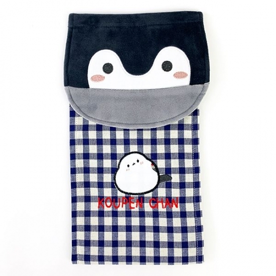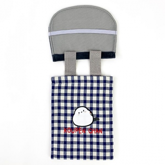 上部のホルダー部分にはコウペンちゃんの顔が♡さらに、予備のロールペーパーを入れられるチェック柄の部分には邪エナガさんまでいます♪