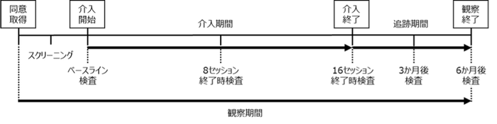 本研究は、単施設で実施する治療介入の単群、前後比較試験です。スクリーニング検査により適格性を満たした、うつ病患者に対し、原則、週1回の外来にてCBT-VRを16セッション実施します。ベースライン、8セッション終了時、16セッション終了または治療中止時の検査と、各セッション時の検査および診療に要する時間の計測と、患者質問票によりCBT-VRの実行可能性を評価します。16セッション終了後または介入中止以降の追跡期間である6か月間は希望する被験者に対してCBT-VRの使用を継続し、3か月および6か月の追跡評価を実施します。