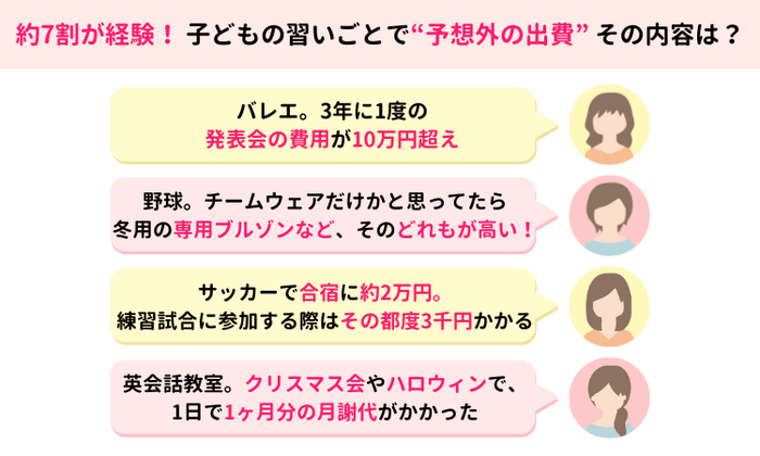 <7割近くの家庭が予想外の出費あり>