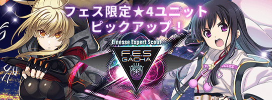 「FinesseExpertScoutガチャ」ではFinesseExpertScout限定ユニット☆4エリザベス・R《六合流・天叢雲》と☆4天羽沙耶《花天月地》が登場します。