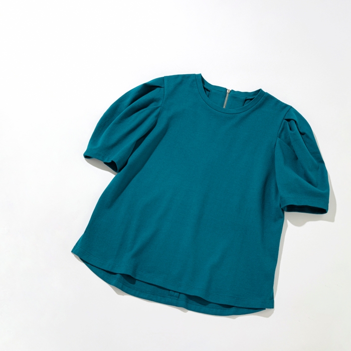 ショルダー部分にタックの入ったボリュームスリーブのカットソーは、夏の一枚着として重宝します。