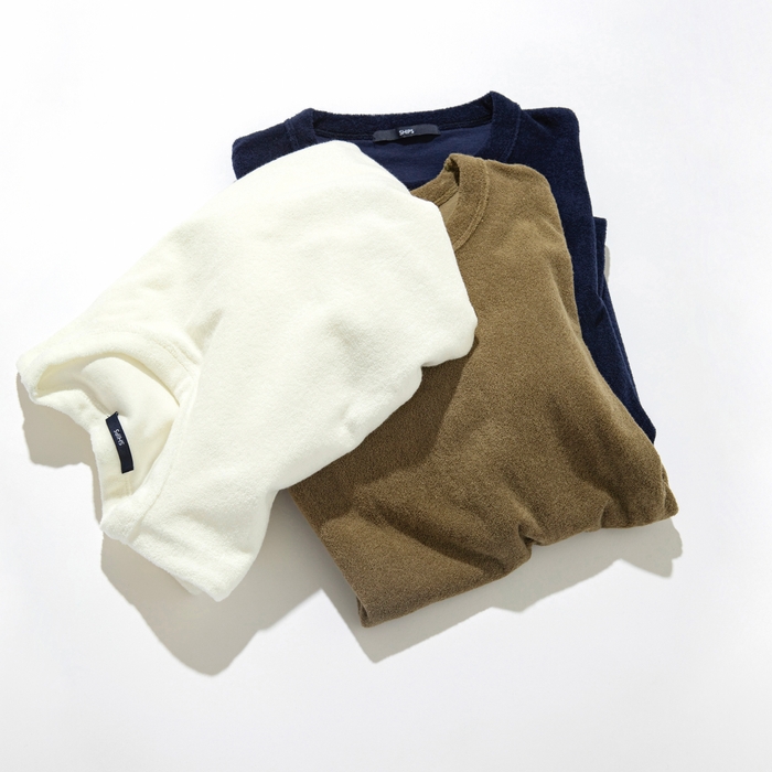 ライトウェイトのミニパイル素材。パイルならではの風合いに清涼感のある、夏場に気持ちいい一枚です。