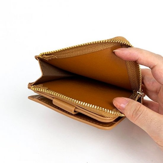 お札の仕切りと3つのポケットが備え付けられているので、カードの収納にも便利◎お札も小さく折りたたまなくても、そのまま入れられるからお会計の際の出し入れがスムーズです♪小銭ポケットは便利なファスナー付き。がばっと開くから中身が見やすい!コンパクト財布特有の小銭がお財布にいくら入っているか分からない事件とも、無縁です☆(よく分からなくなるのは私だけ?)