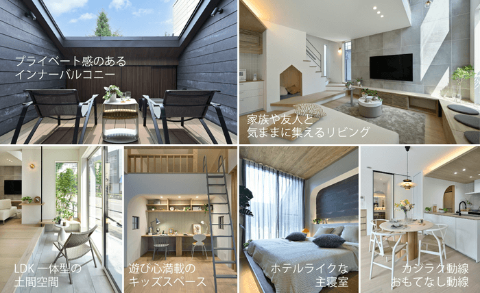 今出川住宅展示場の新モデルハウスMOTENASIE [ モテナシエ ] は、「家」が持つ、家族や友人を迎えるあたたかな想いと、「おもてなし」が醸し出す、特別なひとときを彩るという上質感。その二つを重ね合わせ、“もてなす家”という新しい価値観を表現しています。