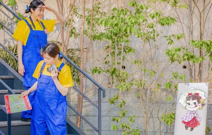 BEB5軽井沢は、レストランや温泉などがある「軽井沢星野エリア」内に位置するホテル。約1万坪の広さがあるエリア内3ヶ所に隠れたレトロ可愛いペコちゃんを見つけるアクティビティが楽しめます。貸し出しのチェキでレトロペコちゃんと写真を撮り、Instagramにアップすると、スタッフからささやかなプレゼントがあります!