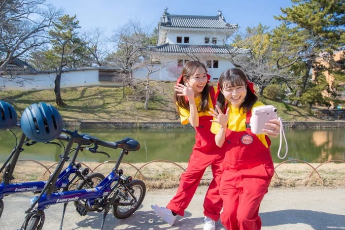 BEB5 土浦の周辺には土浦城の一部や、蔵造の建物といった昔ながらの街並みが残っており、自転車で街を走るとレトロな風景に出会えます。本アクティビティでは、ペコちゃんになりきれるオーバーオールを着用し、自転車に乗りながら、ペコちゃん気分で土浦の街を巡ることができます。貸し出しのチェキで写真を撮り、Instagramにアップすると、スタッフからささやかなプレゼントがあります!
