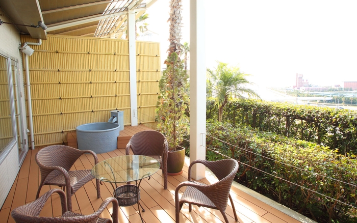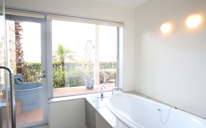 ユーラシアスイートは、洋室、和室、リビング、バルコニー、ビューバスと露天風呂の2種類のお風呂が付いた開放感のある客室です。