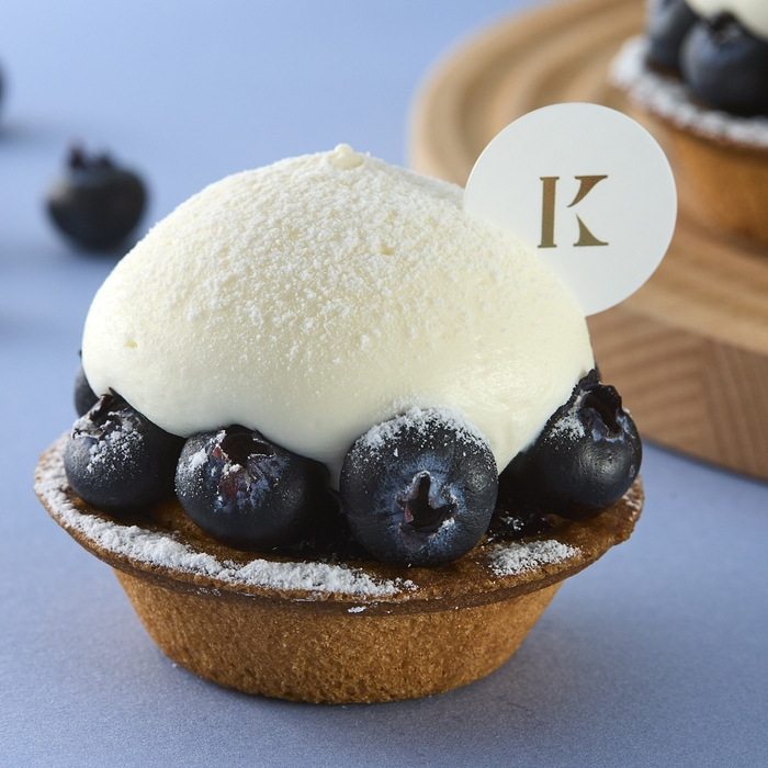 北海道余市産のブルーベリーをたっぷりと飾り、中には自家製カスタードクリームを詰め、2種のブルーベリーをブレンドしたコンポートを入れて焼き上げました。サクサク食感のパイにブルーベリーの甘酸っぱい果実感と香りをお楽しみいただけます。