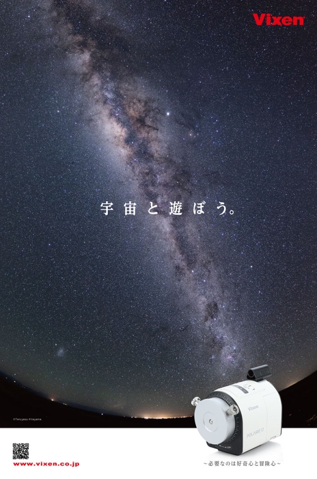 「星を見せる会社になる」という会社ビジョン、「自然科学応援企業」という会社ミッションを、上記ビジュアルとともに、「宇宙と遊ぼう。」というキャッチコピーで表現しました。