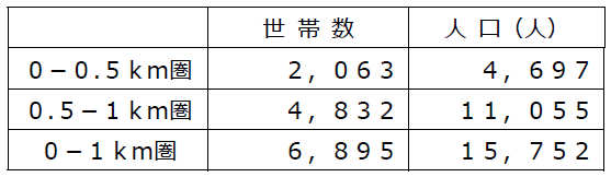・店舗から1㎞圏内は単身世帯比率が31.7%、2人世帯比率が29.5%と全体の6割が少人数世帯。3人以上世帯が全体の4割と東京都の基準値より高く、18歳未満のお子様がいる世帯が多い地域です。