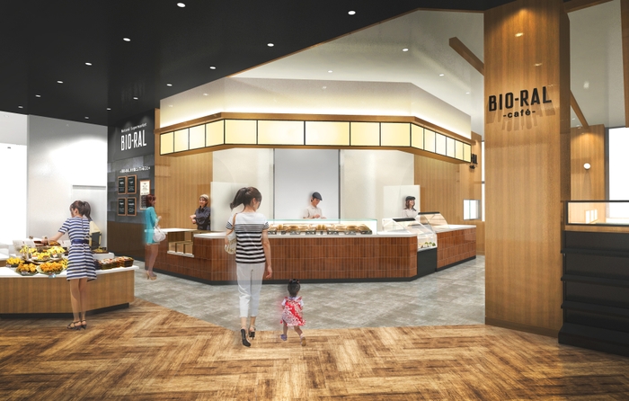 “「ビオラル」というブランドをより多くの人に知ってもらい、その世界観を体験してもらえる場所を作りたい”という思いから、物販エリアにて販売しているオーガニック素材やビオラルブランドの食材を使用した食事で、“おいしく・体にやさしく・憩いのあるひととき”を過ごしていただける大型ビオラルカフェを導入いたします。物販エリアに隣接しているため、お食事後に気に入った商品をご購入いただけます。