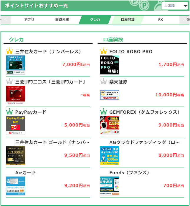 1つの案件を複数のポイントサイトで比較し、「どのポイントサイトが一番高いポイントを得られるか?」を比較してくれます。