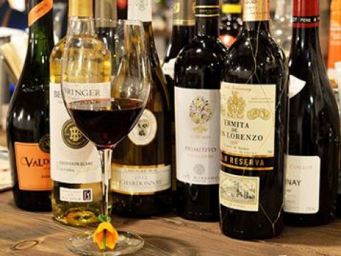 幅広い種類のワインを常備!ボトルワインは30種類以上、グラスワインは10種類前後あります