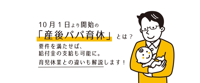 2022年10月より「産後パパ育休」が開始されました。まだ聞きなれないという方が多いと思いますがどんな制度なのでしょうか?今回のコラムでは産後パパ育休の制度について、育児休業との違いや、どんなメリットがあるのかなどをご紹介します。