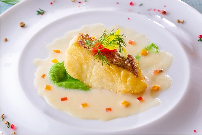 皮目をパリッとポワレで仕上げた淡泊な鱈の身に、優しい甘さの讃岐白みそがアクセントのクリーミーなソースを添えた、和洋美味しいところ取りのメニューをご堪能ください。