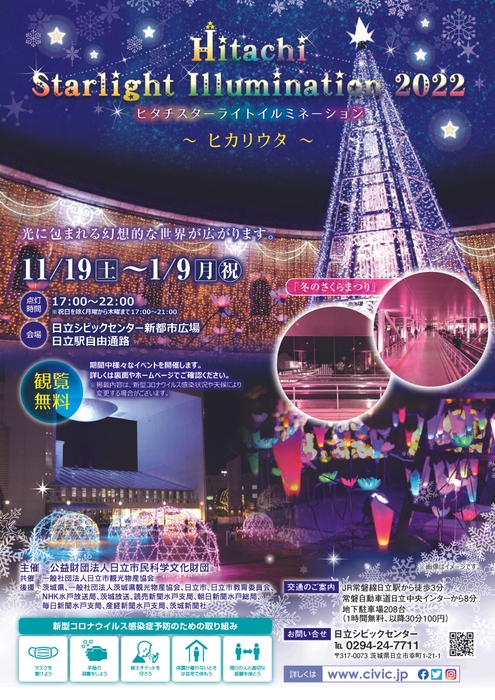 令和4年11月19日(土)から、「星降るイルミ」をテーマに、上下左右から光に包まれる幻想的な世界を創り出す「Hitachi Starlight Illumination 2022~ヒカリウタ」を開催しています。