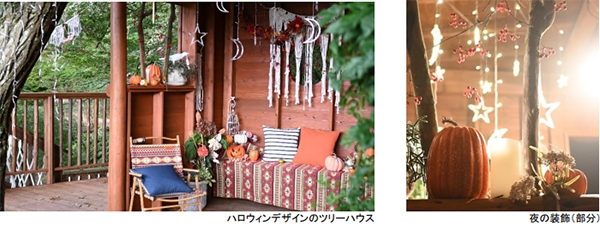 SIKIガーデン内に自生する栗の木を土台としてつくられたツリーハウスが、期間限定でハロウィンデザインに模様替えします。ツリーハウスに設置されたロッキングチェアで揺られたり、カウンターテーブルでコーヒーを飲んだりと、樹上で秋の風を感じながら寛ぎのひと時をお過ごしいただけます。期間中はツリーハウス内にハロウィンの設えを施し、秋の深まりを演出します。