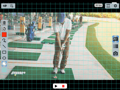 Sports Coaching DELAYには描画機能があり、自分が理想とする動きなどを画面に書き込むことが可能です。画面にマス目を表示したり、体の各部の動きを線で描いたり、要注意のポイントを円で囲ったり、それに合わせて繰り返し練習をすることで、より効果的な練習が可能になります。