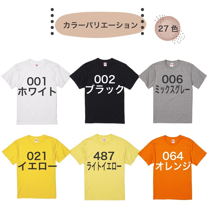 27色のカラー展開で、お好きなTシャツに自由にデザインしていただけます。