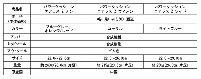 本製品はメンズ、ウィメンズに4Eサイズのワイドモデルを加えた幅広いラインナップを展開。ラチャノック・インタノン(タイ)やキャロリーナ・マリン(スペイン)、廣田彩花(丸杉)が使用予定です。