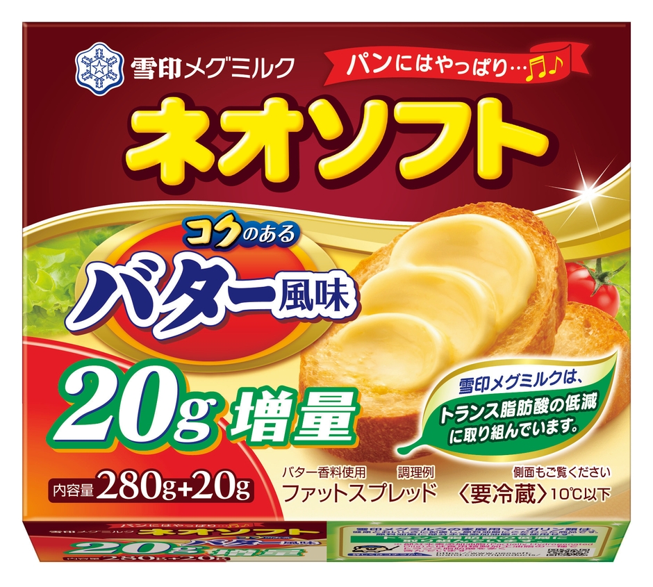 また『ネオソフト』(300g)と『ネオソフト コクのあるバター風味』(280g)の20g増量のキャンペーンを10月上旬より約3ヵ月間実施します。