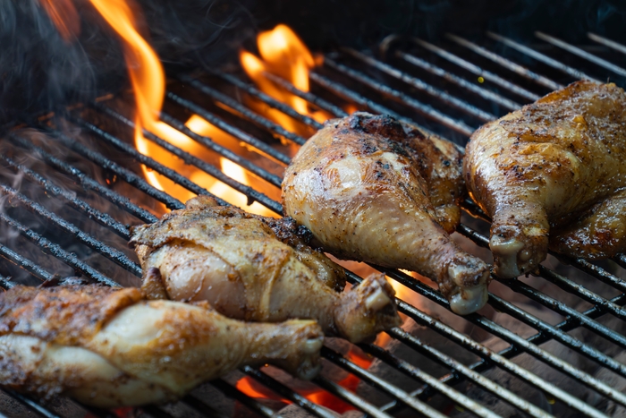 骨付きのチキンレッグをシンプルな味付けでグリル。皮はパリッと、中はジューシーな仕上がりです。