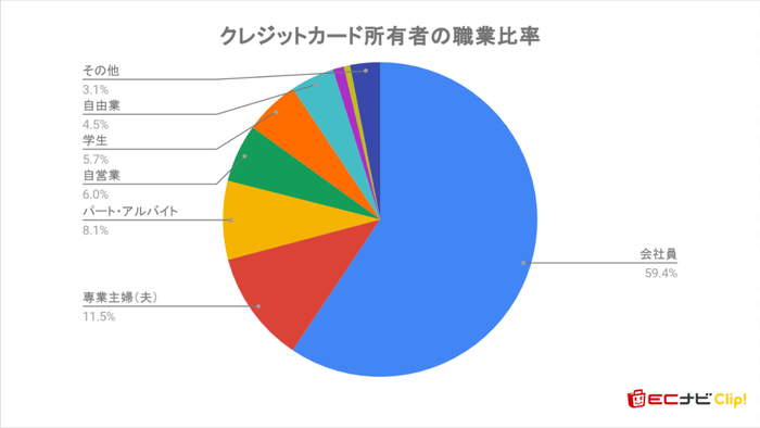 職業別で見ると、個人信用情報を担保しやすい「会社員:59.4%」の回答がもっとも多く、続いて2番目に「専業主婦(夫):11.5%」、「パート・アルバイト:8.1%」が3番目に多い結果となりました。