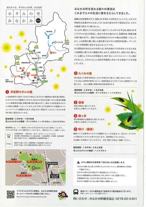 現在では、自然発生するホタルの数が北関東一であり、またゲンジボタルとヘイケボタルが同時期に発生するエリアをもつ、とても貴重なホタル観賞スポットとなっています。豊かな自然にホタルが飛び交う絶景を守るべく、人と自然が共生する地域づくりを行っています。