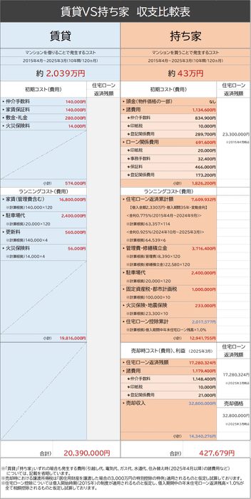 次頁の「賃貸VS持ち家 収支比較表」をご覧ください。