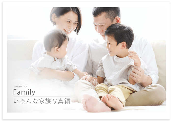 今回はライフスタジオで撮影された家族写真をいろんなタイプごとに分けてご紹介させていただきます。今年こそはぜひ家族そろって家族の今を写真に記録しましょう。