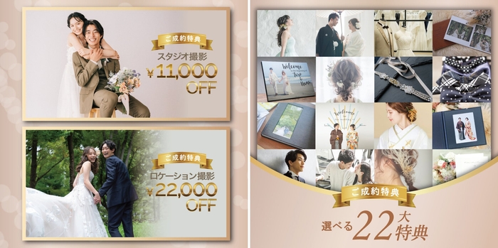 期間中にご来館またはオンライン相談にて撮影をご成約のお客様に、豪華特典をご用意しております。