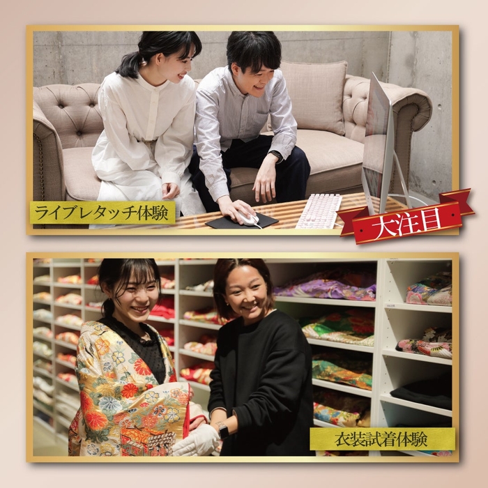 フォトグラファーによる撮影と、自分好みのレタッチができる「ライブレタッチ」を体験していただきます。