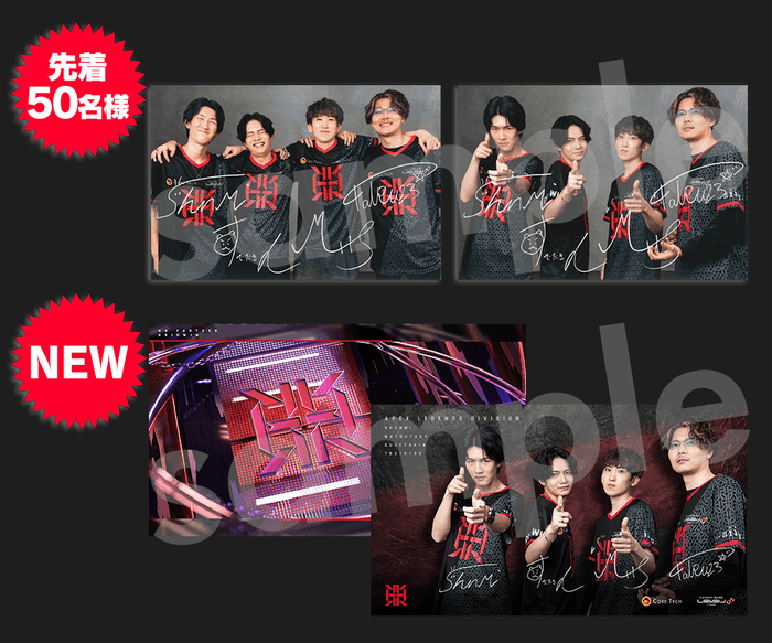 REIGNITE LEVEL∞コラボゲーミングPCをご購入された先着50名様に、APEX部門メンバー4名のサイン入りポストカード2種をプレゼント!